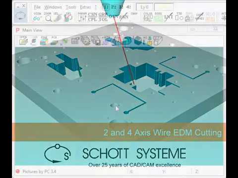 Pictures by PC enables the CNC wire cutting of 2D and 3D CAD geometry in a few simple steps. Proven 2 and 4 axis machining strategies (roughing, finishing, destroy cutting) are applied with a single mouse click and adjusted accordingly. The user has full control over the cutting parameters. Corner types include ISO and conic corners. Toolpaths can be simulated with the machine post processor and translated into NC code.